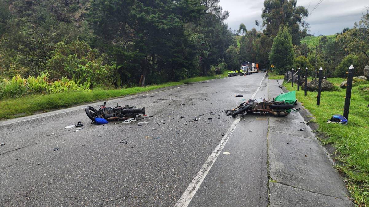 El informe preliminar señala que dos motocicletas (una Yamaha de color negro que no tenía Soat vigente y otra marca AKT que sí tenía Soat) se chocaron después de que la otra invadiera el carril contrario para hacer una maniobra de adelantamiento.