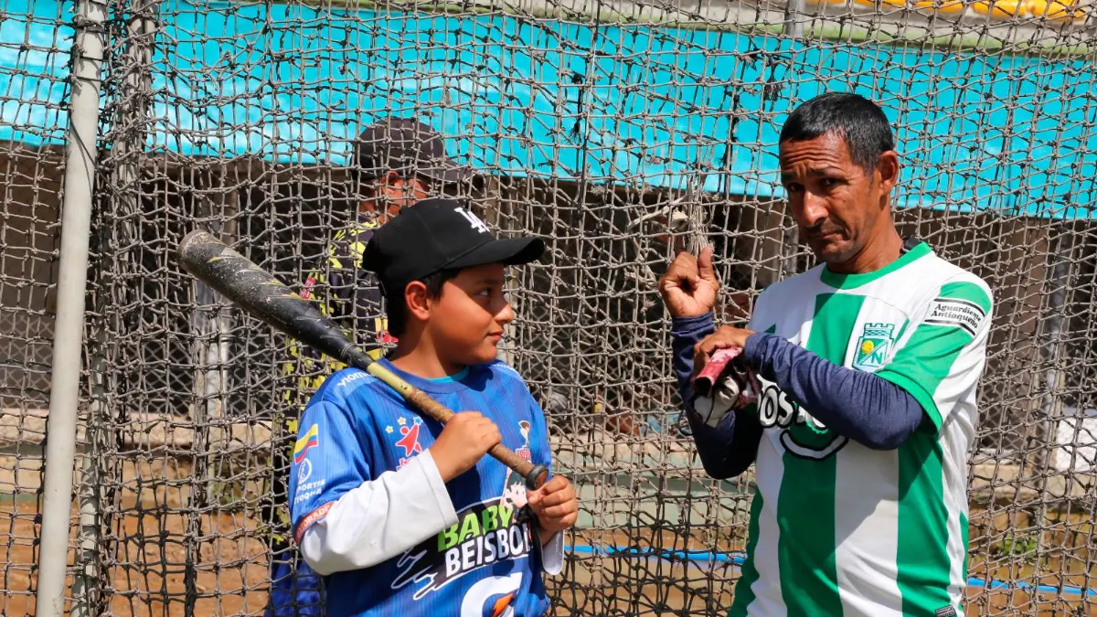 Cada día, este jugador de 12 años llega al diamante acompañado por su padre en la moto. Mientras él se queda entrenando, su papá continúa la jornada laboral a escasos metros del campo de juego, en el semáforo, donde trabaja desde hace más de 18 años, en la Unidad Deportiva Atanasio Girardot de Medellín.