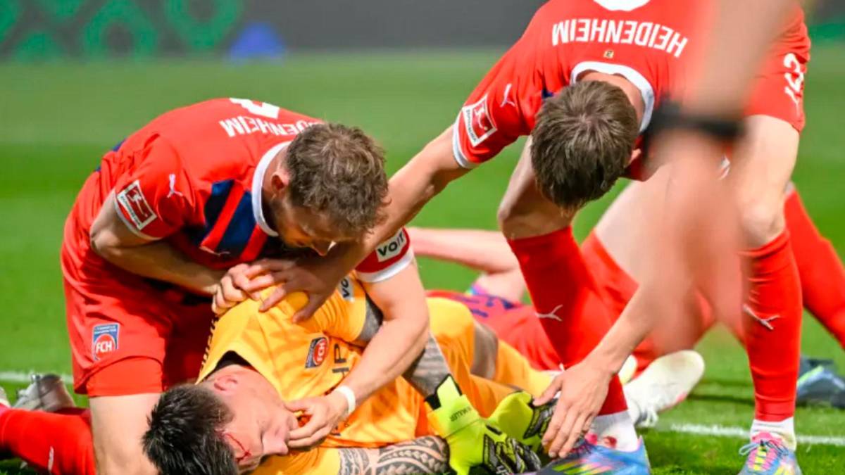 El arquero del Heidenheim, Kevin Müller, fue evacuado en una camilla después de varios minutos de ser atendido en el césped por un fuerte golpe en un duelo aéreo que tuvo lugar este viernes, durante el juego ante el Bochum, en la jornada 32 de la Bundesliga alemana.