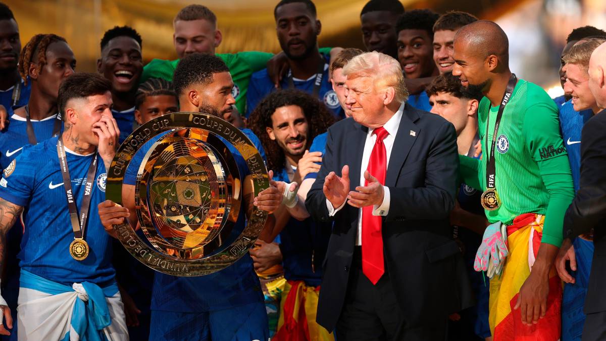 Como invitado de honor, Trump acompañó con saltos y aplausos la celebración de los jugadores del Chelsea cuando su capitán Reece James elevó el trofeo que le entregó el mandatario tras la final en el estadio MetLife en East Rutherford, a las afueras de Nueva York.