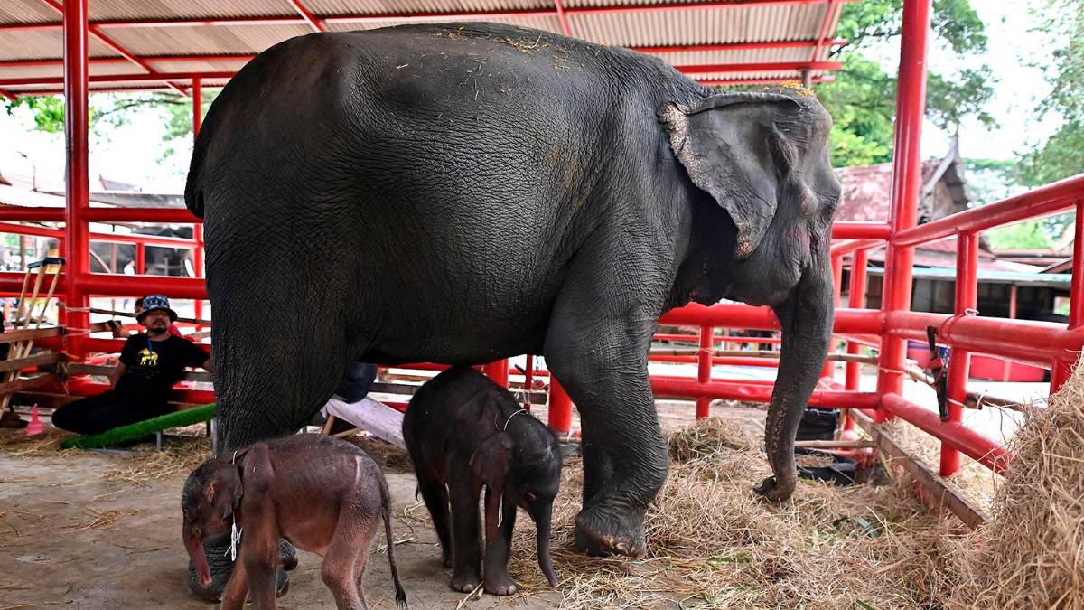 En un hecho poco común, una elefanta dio a luz a gemelos en el centro de elefantes Royal Kraal en Tailandia. El acontecimiento ha generado gran expectativa por las pequeñas crías.