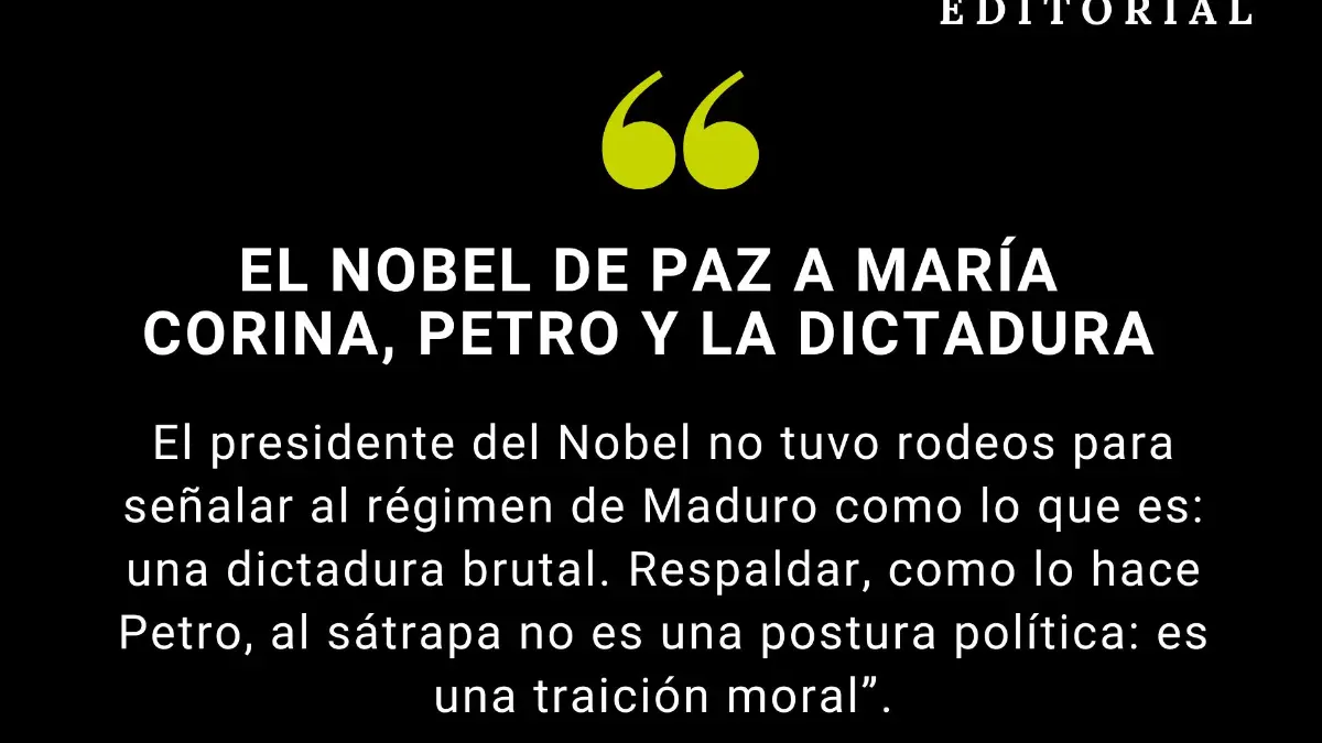 El presidente del Nobel no tuvo rodeos para señalar al régimen de Maduro como lo que es: una dictadura brutal. Respaldar, como lo hace Petro, al sátrapa no es una postura política: es una traición moral.