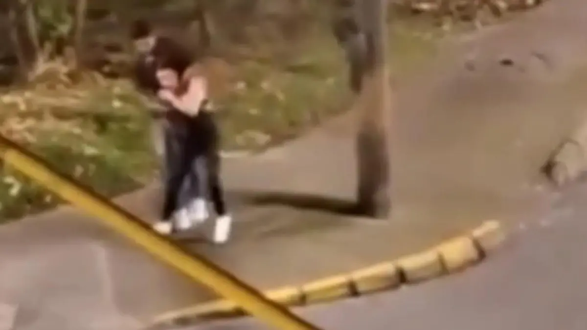 En el lugar quedó captada una pareja que al parecer estaba discutiendo de manera airada. Posteriormente, el hombre tomó por el cuello con fuerza a la mujer, al parecer con la intención de ahorcarla. La mujer se resistió como pudo al alevoso ataque a traición.
