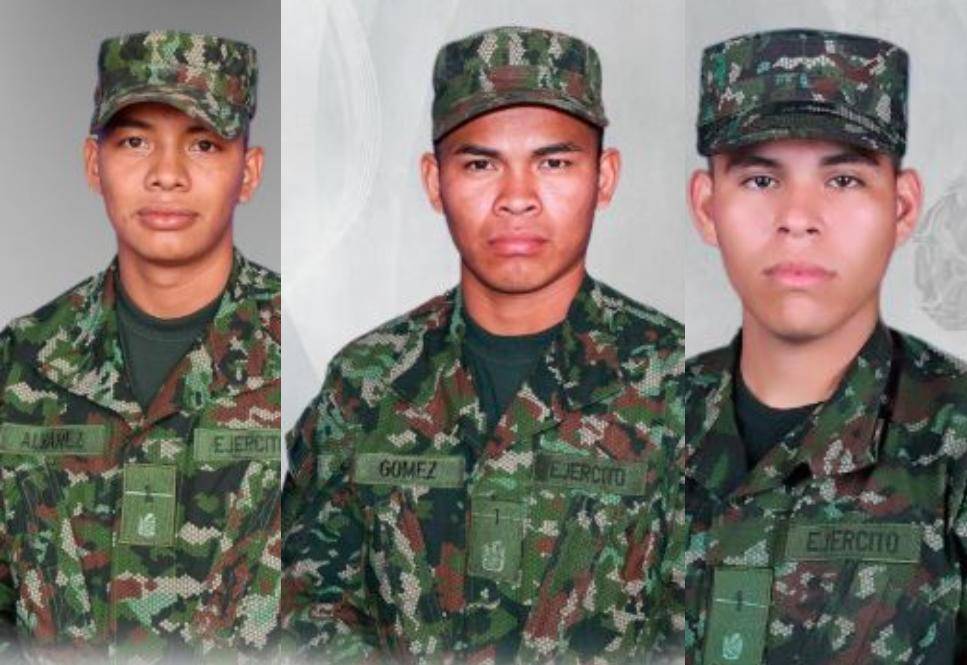 El Ejército confirmó la identidad de los uniformados que murieron: Andrés Esteban Álvarez Sierra, Darwin Arnoldo Gómez Gutiérrez y Brayan Steven Galindo Amado.