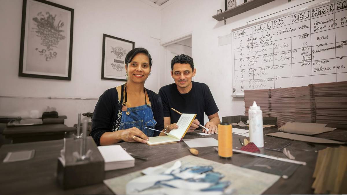 “El nombre ‘Talante’ surgió después de una búsqueda intensa. Queríamos una palabra con carácter, y al encontrar su raíz semántica, que significa ‘la mejor manera de hacer una cosa’, sentimos que era perfecta para representar nuestro trabajo”, dice la artista Yuli Andrea Cadavid, cofundadora del taller de encuadernación.