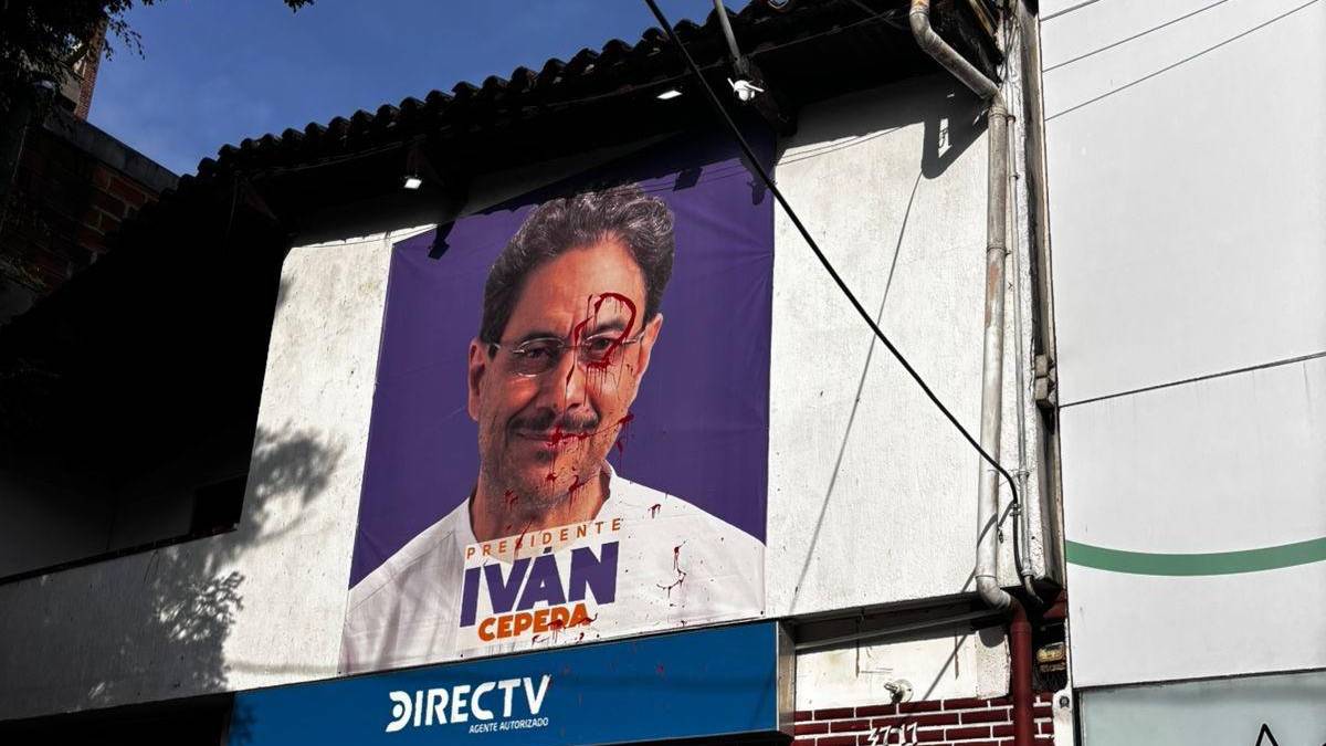 Según reportes preliminares, varias personas sin identificar lanzaron pintura roja contra un afiche con la imagen del candidato presidencial. El ataque también afectó viviendas y locales comerciales cercanos.
