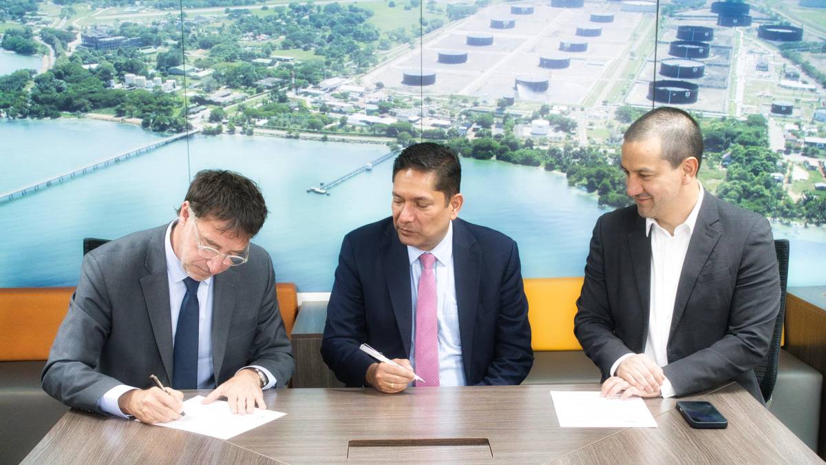 De izquierda a derecha, Diego Perez Claramunt, President & Country Manager, Colombia, Gran Tierra Energy; Juan Carlos Hurtado, vicepresidente ejecutivo de Hidrocarburos de Ecopetrol; Julián Fernando Lemos, vicepresidente corporativo de Estrategia y Nuevos Negocios de Ecopetrol. Foto: Cortesía